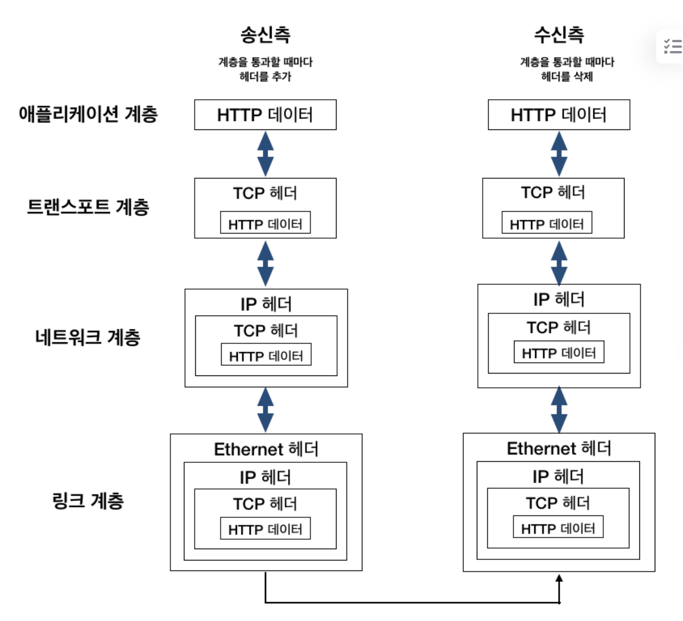 5. 수신측 서버는 링크 계층에서 데이터를 받아들여 순서대로 위 계층에 전달하여 애플리케이션 계층까지 도착