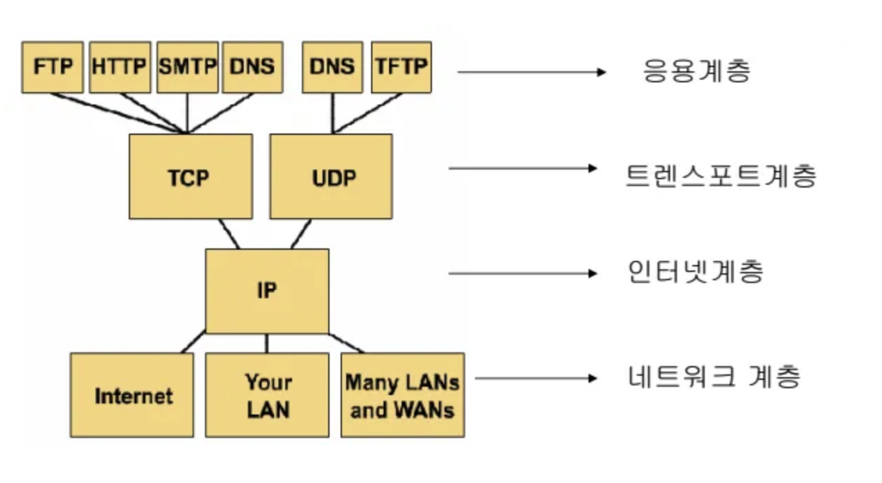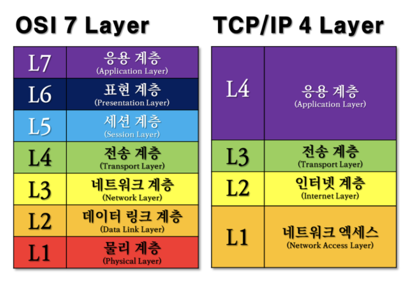 - TCP/IP 4 계층 : OSI 7 계층 이론을 실제 사용하는 인터넷 표준