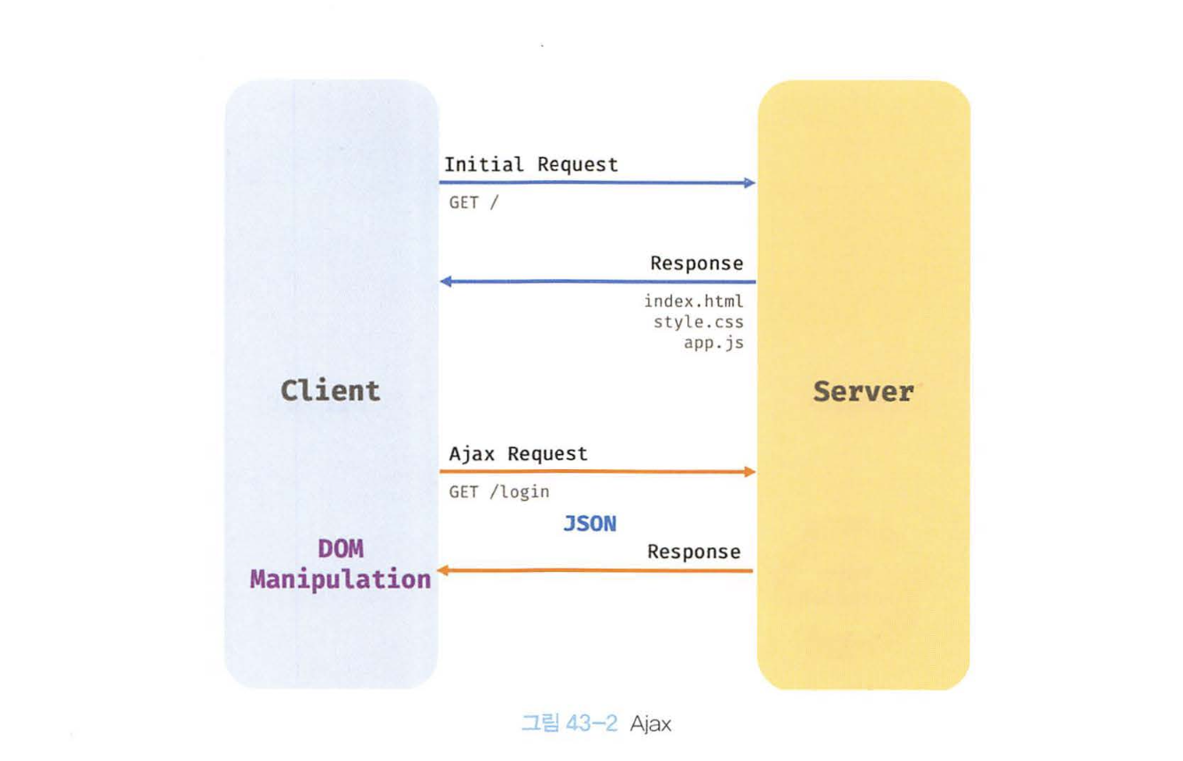 - Ajax 이전의 웹페이지는 html 태그로 시작해서 html 태그로 끝나는 완전한 HTML을 서버로부터 전송받아 웹페이지 전체를 처음부터 다시 렌더링 하는 방식으로 동작함.