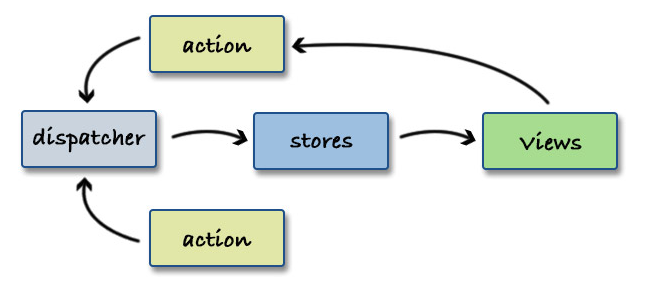 - store는 애플리케이션의 상태와 데이터를 저장하고, 이를 관리하는 역할을 한다. store는 dispatcher로부터 전달된 액션을 수신하여 해당 액션에 대한 로직을 처리하고, 결과를 저장한다.