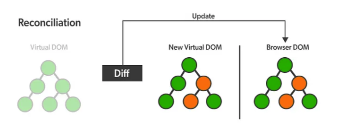 - React는 이를 통해 차이가 발생한 부분만을 실제 DOM에 적용한다.