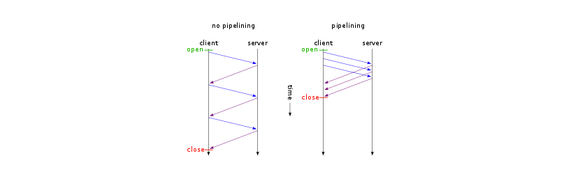 - 따라서, HTTP 1.1에서는 HTTP Pipelining이 도입하여 네트워크 시간을 줄이는 방식을 도입하였다.