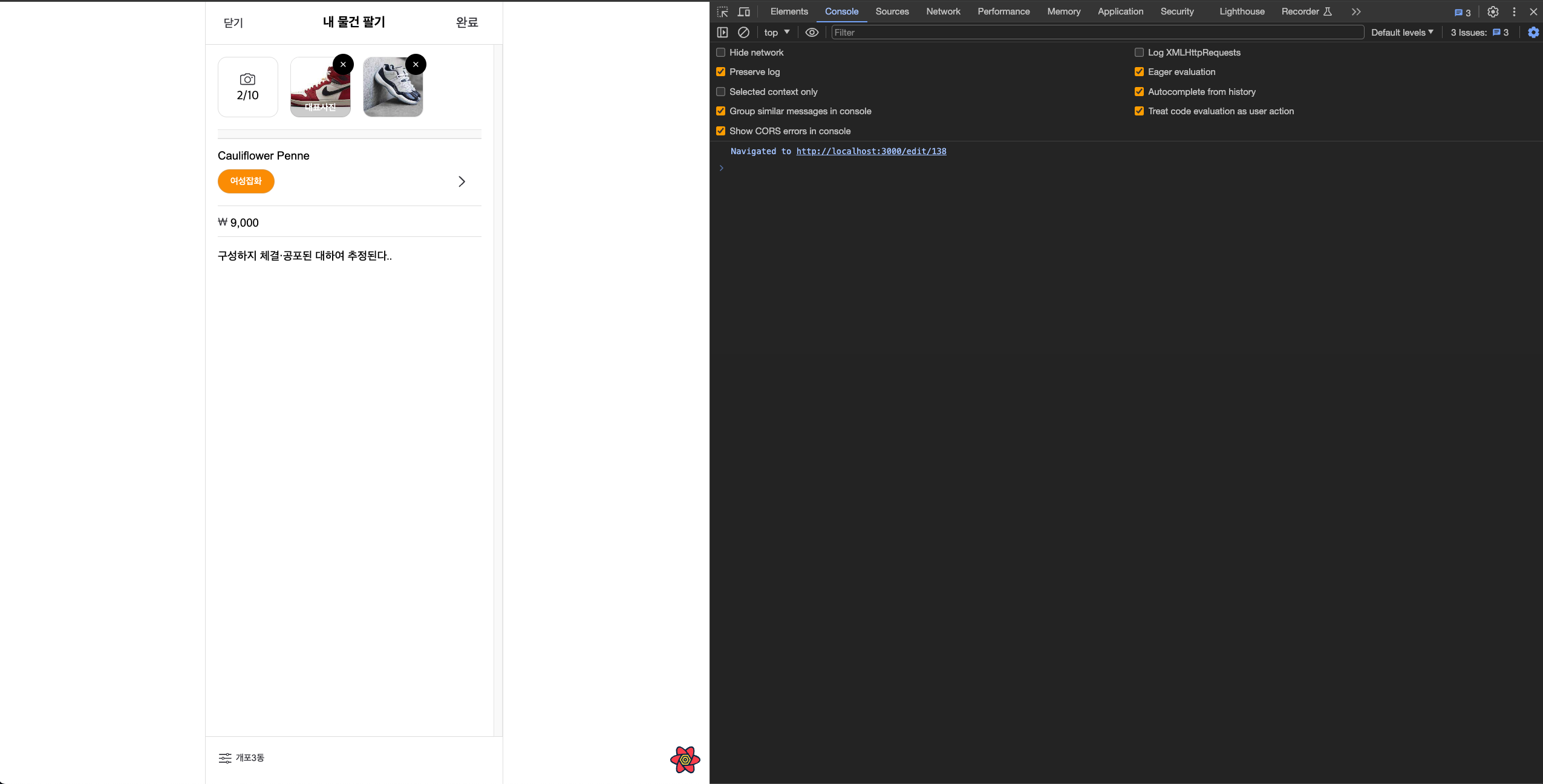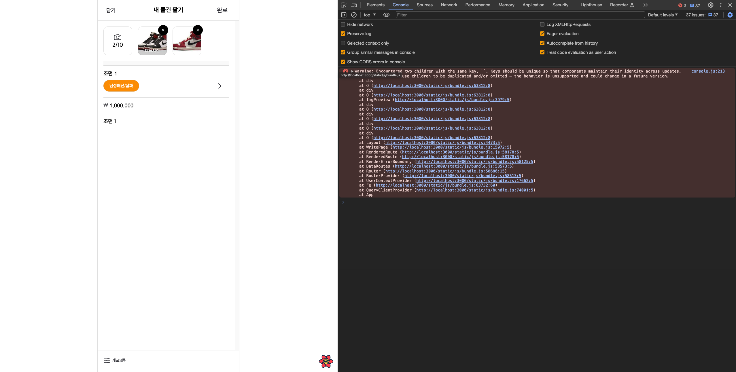 - 프로젝트에서 상품 정보를 수정했을 때, 수정(작성)페이지에서 선택된 지역을 설정하는 기능을 수정하고 있었고 개발자 도구에서 전혀 예상하지 못한 경고를 발견했다.