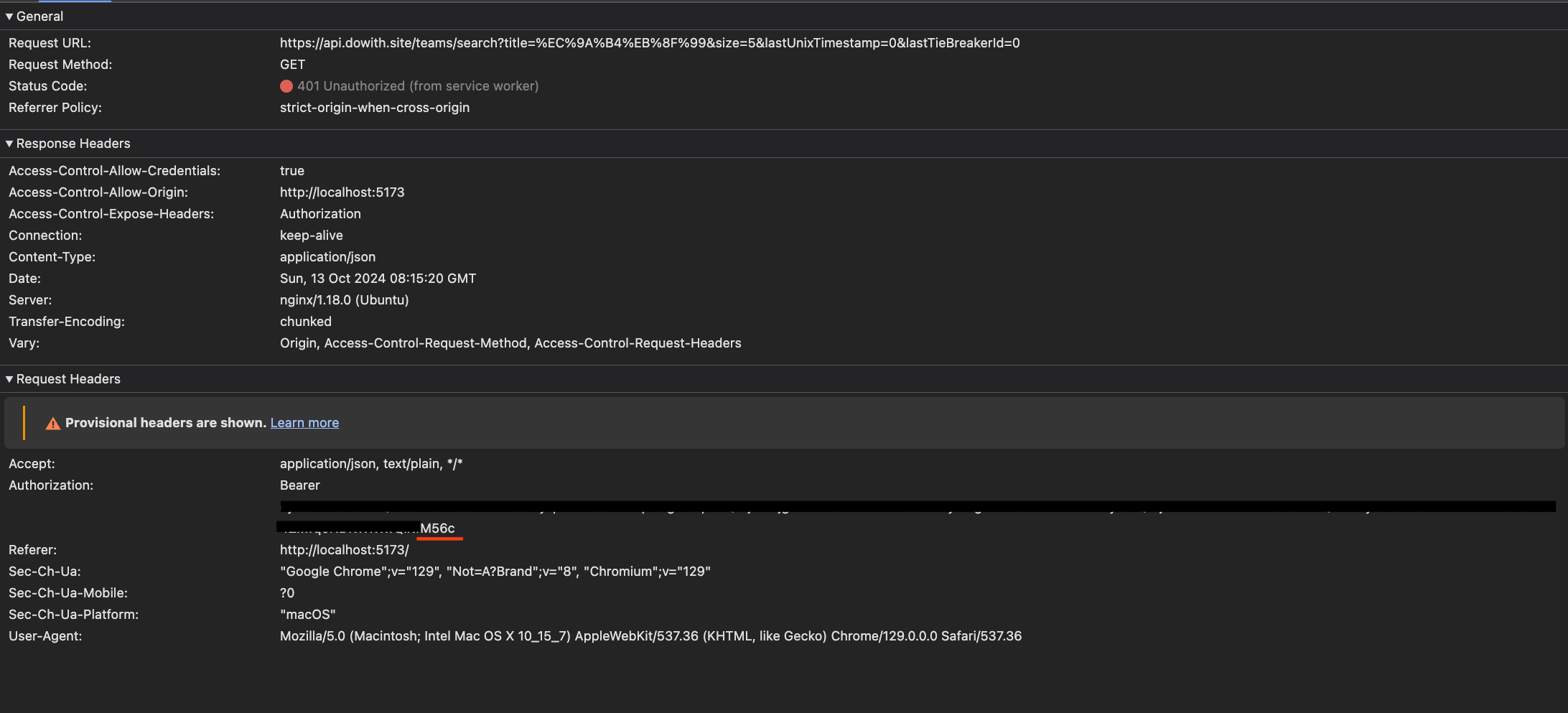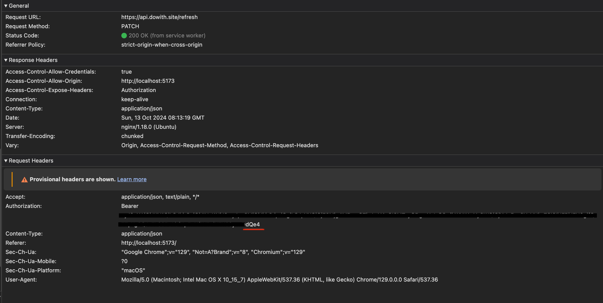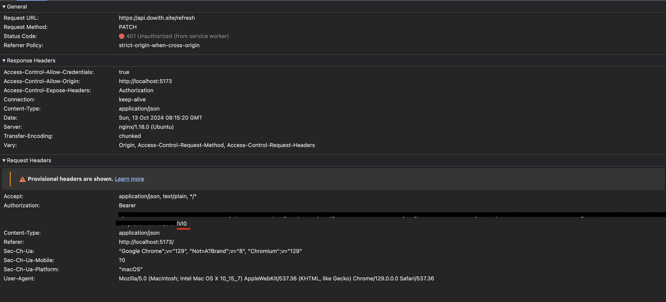 - 그리고 새롭게 발급 받은 "opzk"로 끝나는 access token을 사용하여 이전에 401 에러가 발생한 api 요청을 자동으로 재요청하는 모습이다.