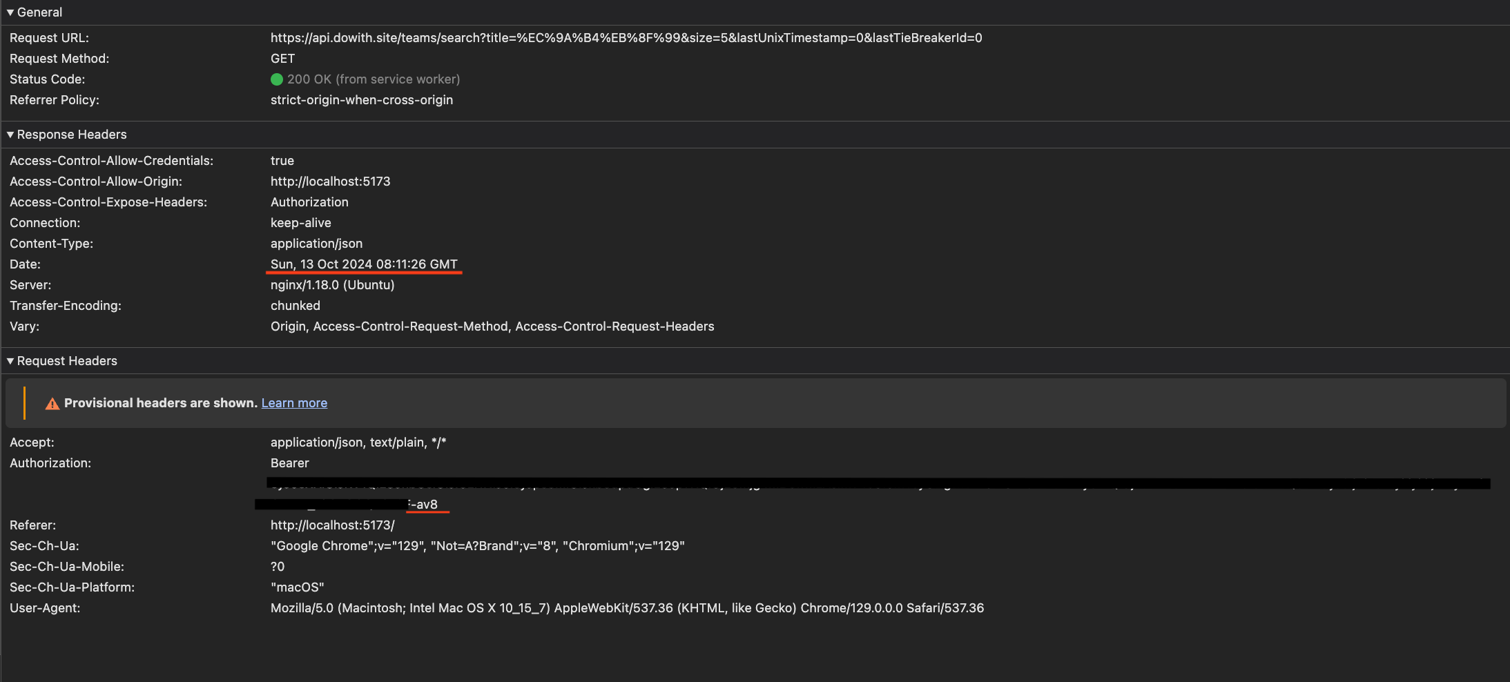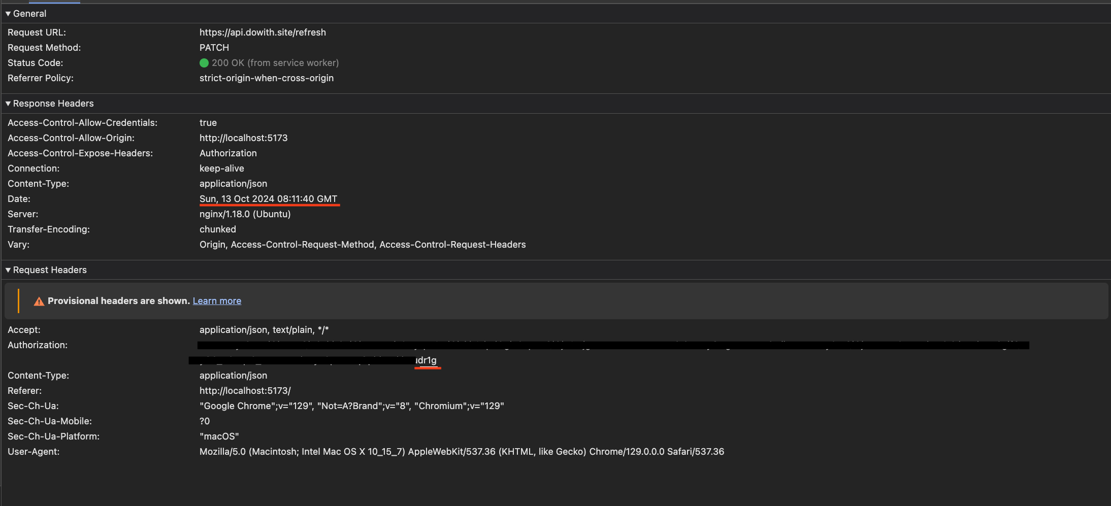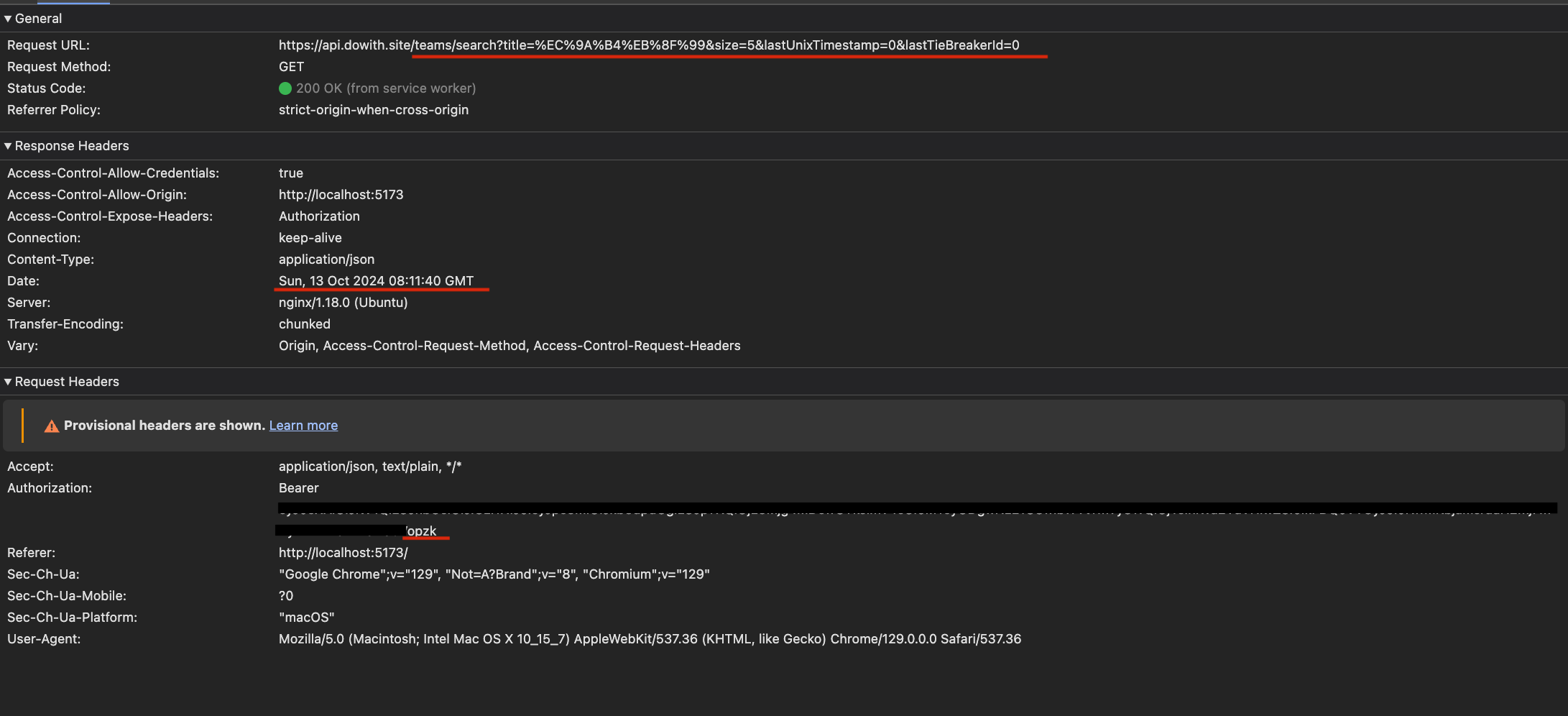 - 그리고 새롭게 발급 받은 "opzk"로 끝나는 access token을 사용하여 이전에 401 에러가 발생한 api 요청을 자동으로 재요청하는 모습이다.