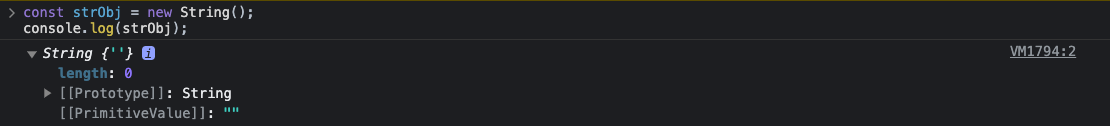 - [[PrimitiveValue]]라는 접근할 수 없는 프로퍼티가 확인되고, 이는 [[StringData]] 내부 슬롯을 가리킨다.