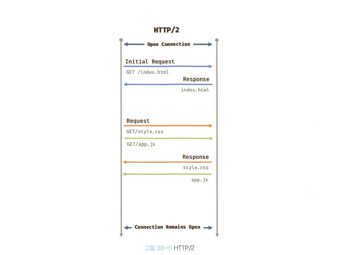 - 따라서, link 태그, img 태그, script 태그 등에 의한 리소스 요청이 개별적으로 전송되고 응답 또한 개별적으로 전송된다.